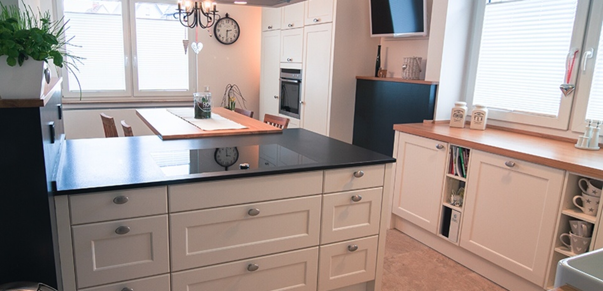 …Coming home – Landhausküchen zum Verlieben. Lebendig & Charmant empfangen sie uns mit herzlicher Atmosphäre. Sie laden zum Kochen und Wohlfühlen gleichermaßen ein. Unsere Verknüpfung von Tradition und Moderne.