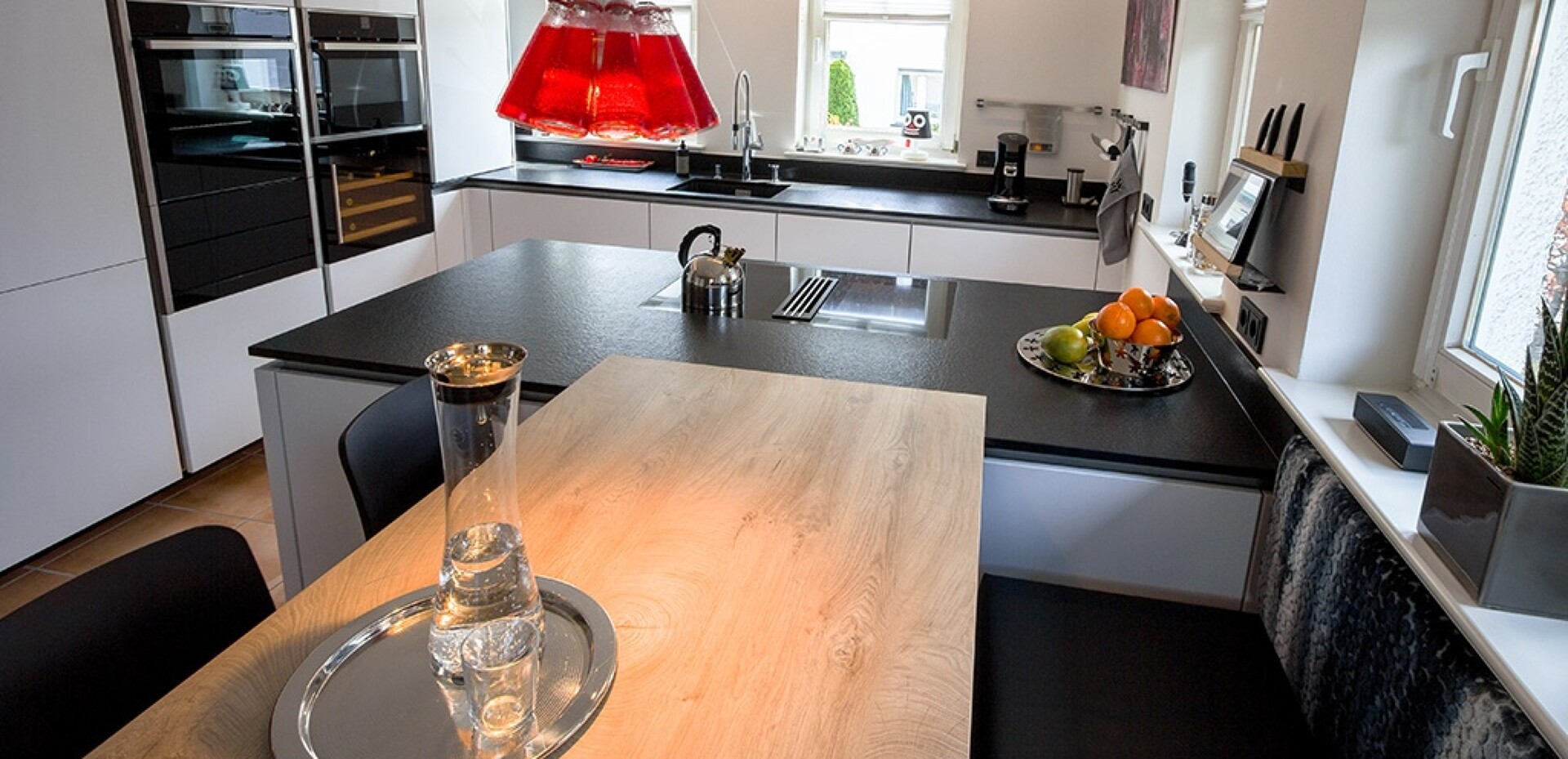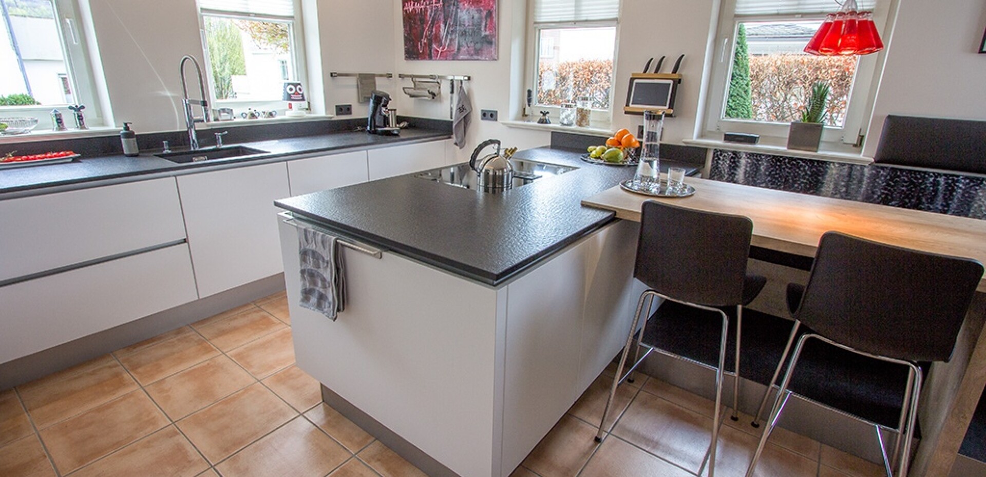 In einem  Ortsteil von Bestwig haben wir wieder alles gegeben: Kochinsel, Sitzplatz auf einem Podest, indirekte Beleuchtung usw.