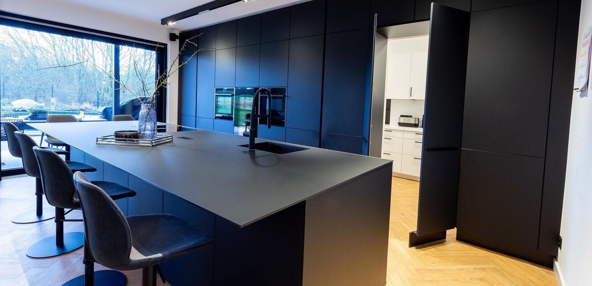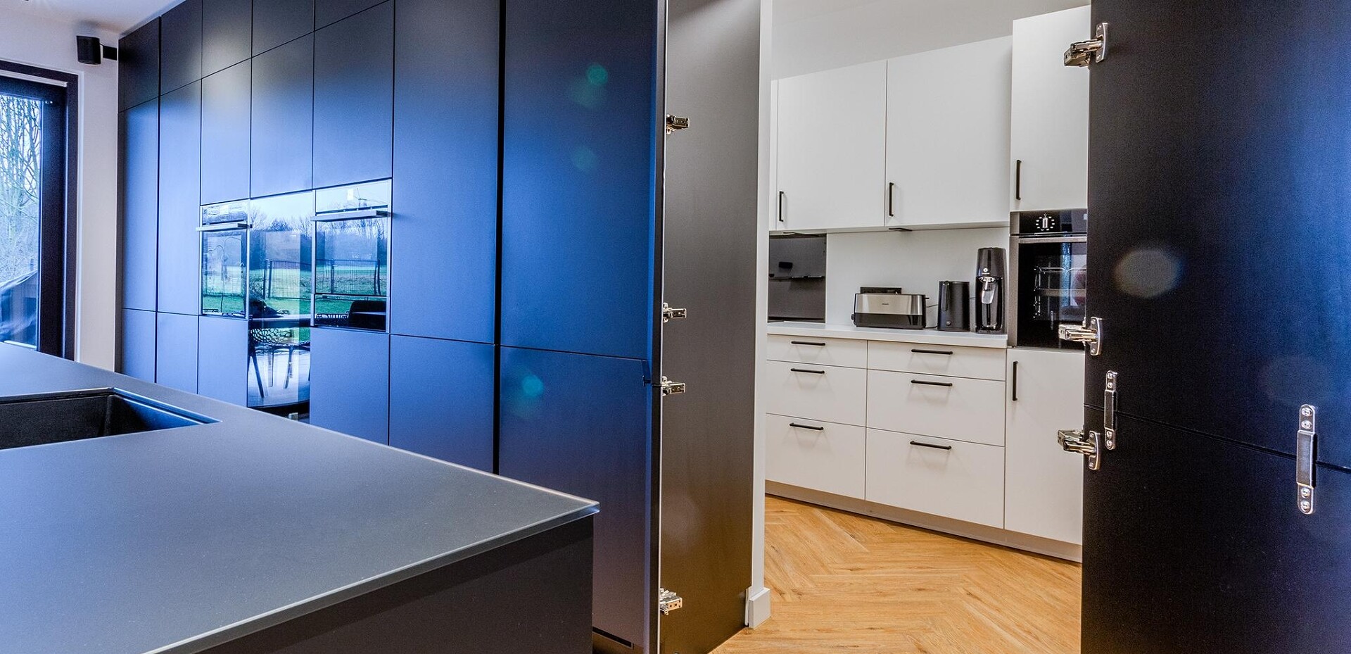 Und zur schwarzen Wohnküche gab es noch - gut "versteckt" - eine Backup Kitchen in Weiß.