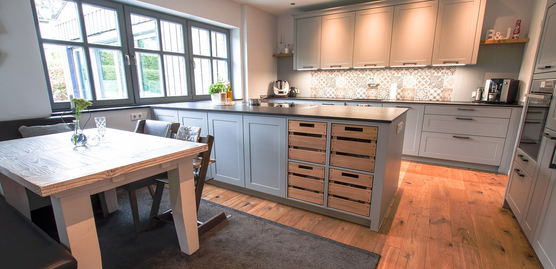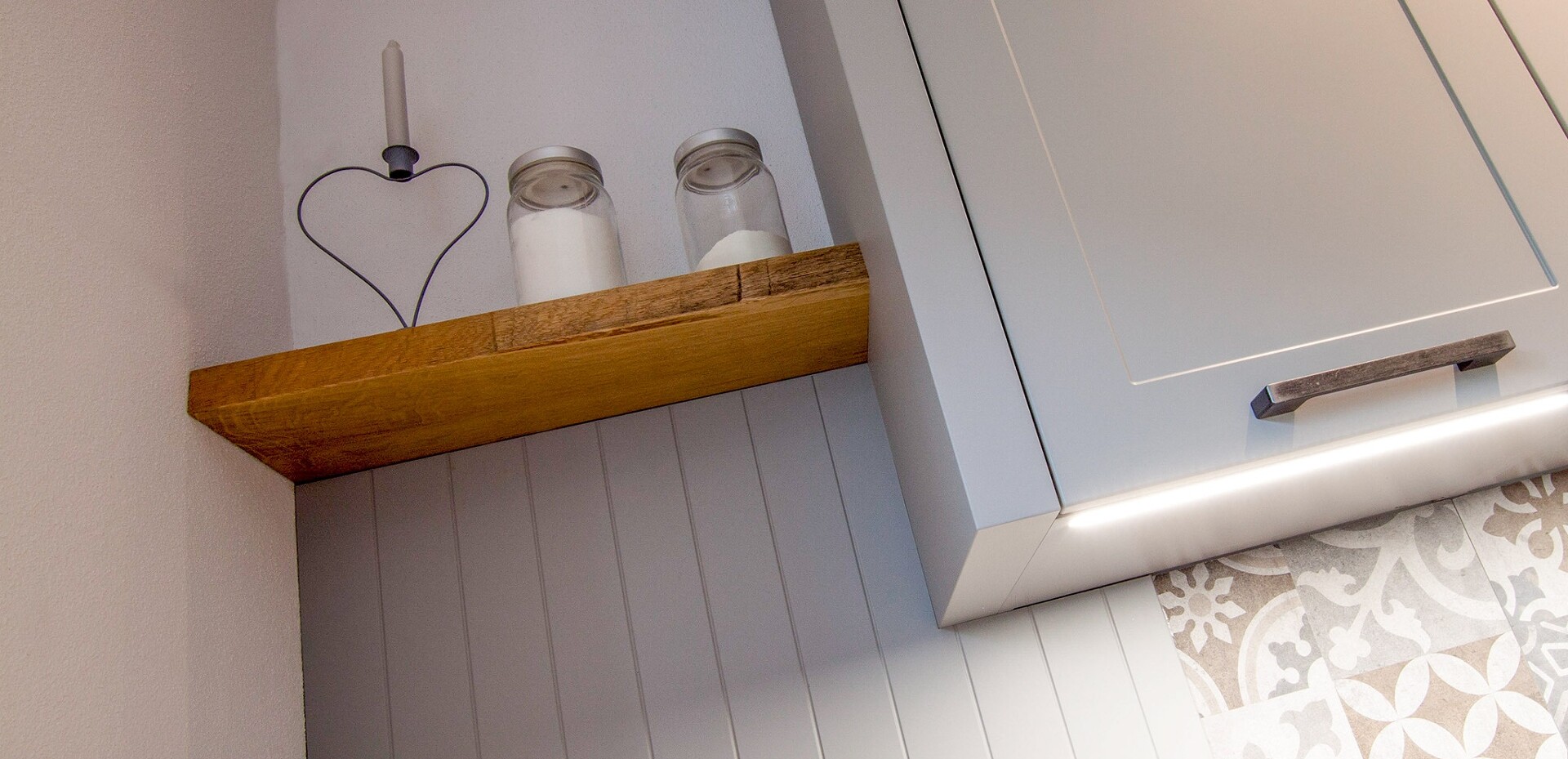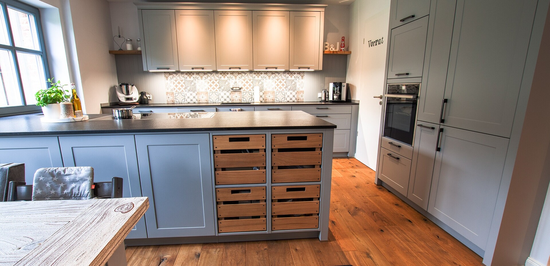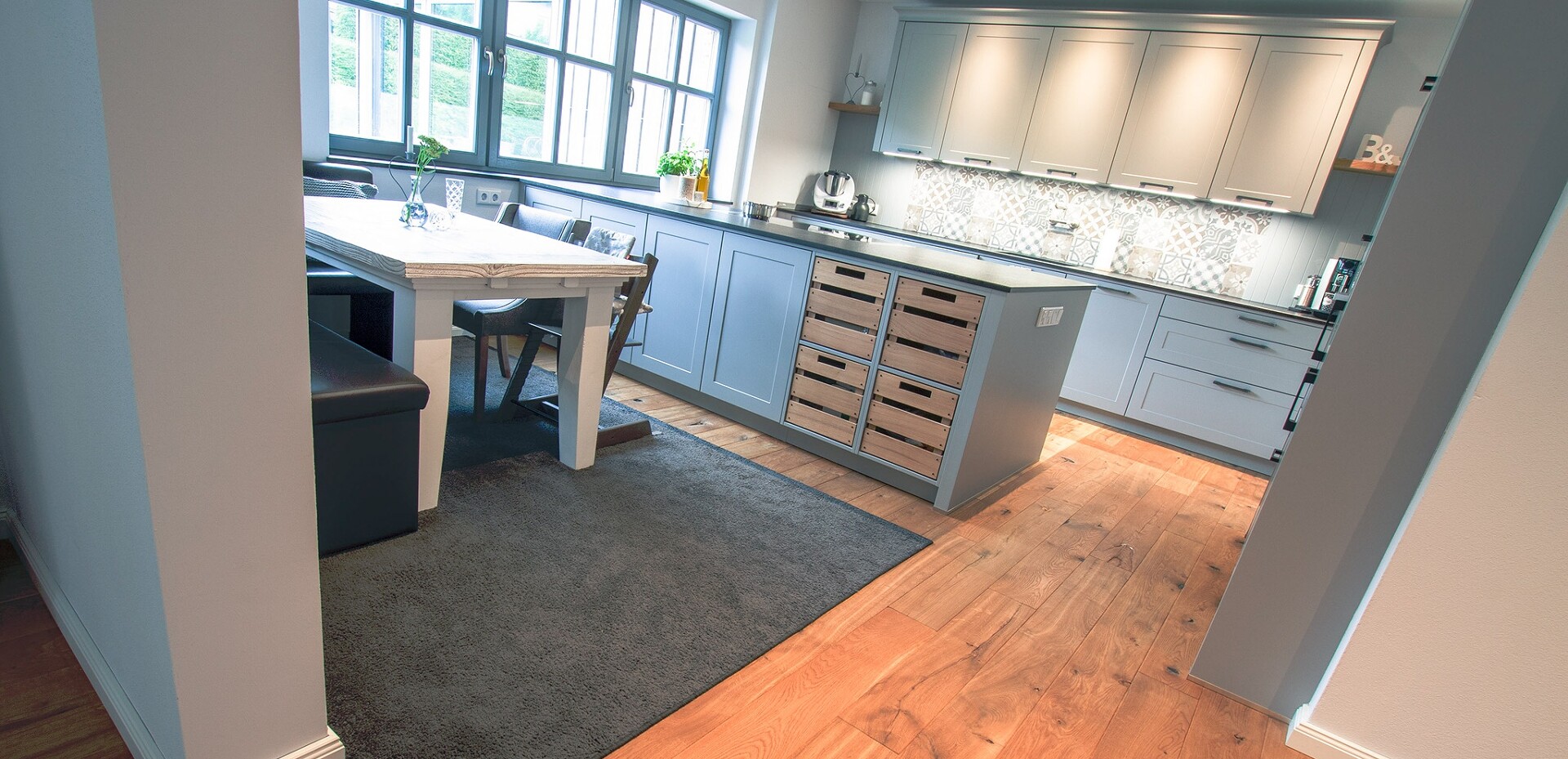 Mit Kalkstein hat unser Kunde den ganzen Tag zu tun, daher war es naheliegend, die Arbeitsplatte auch in Stein zu wählen. Alternativ allerdings  aus einem anderen Steinbruch ;)