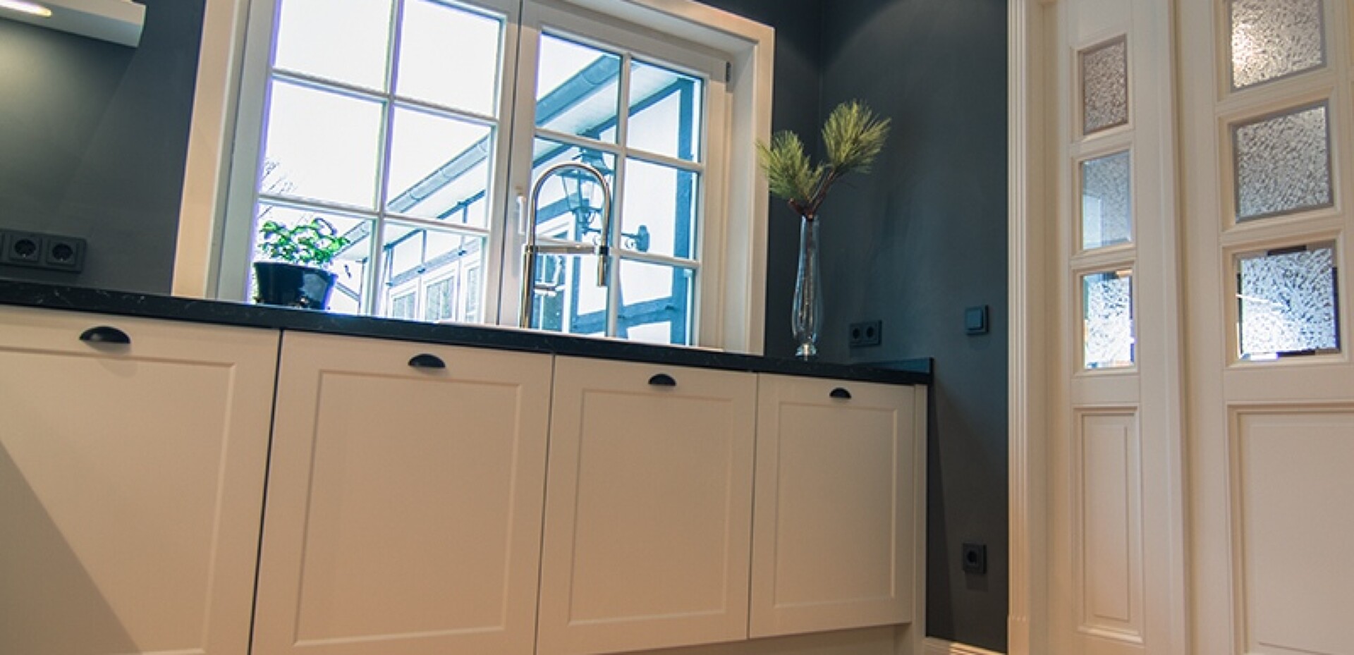 Diese Landhausküche ist nicht besondes groß, aber durch das stilsichere Händchen unsere Kundin für ganz besondere Kleinigkeiten wurde sie zum Schmuckstück. Wir bedanken uns für die tolle kreative Zusammenarbeit.