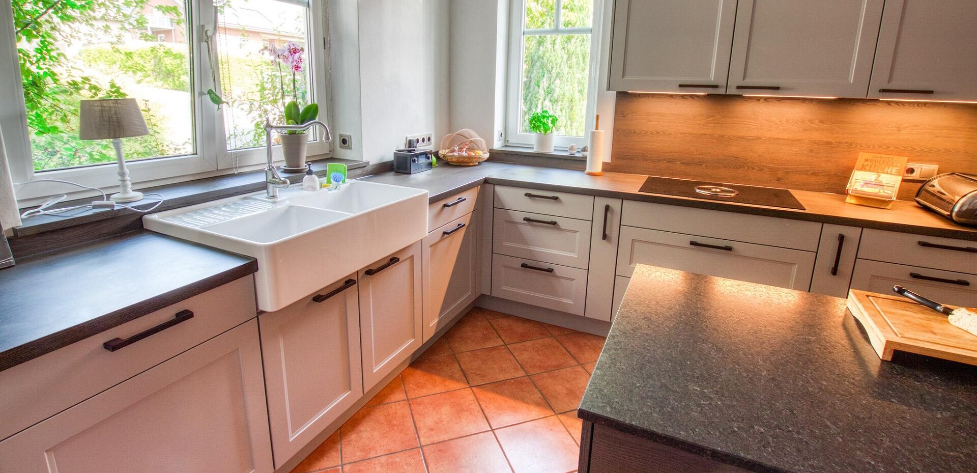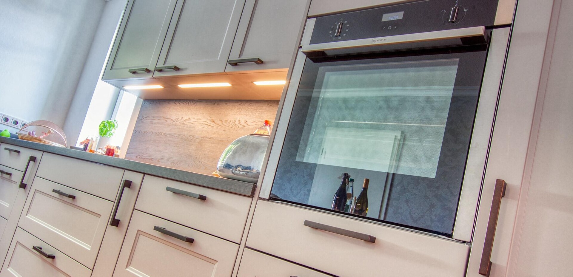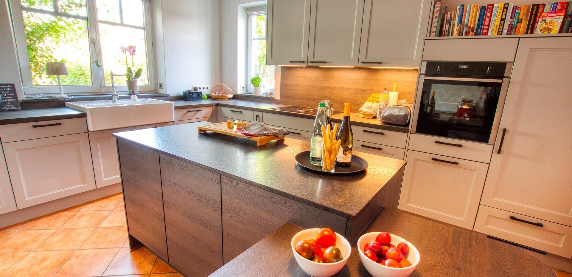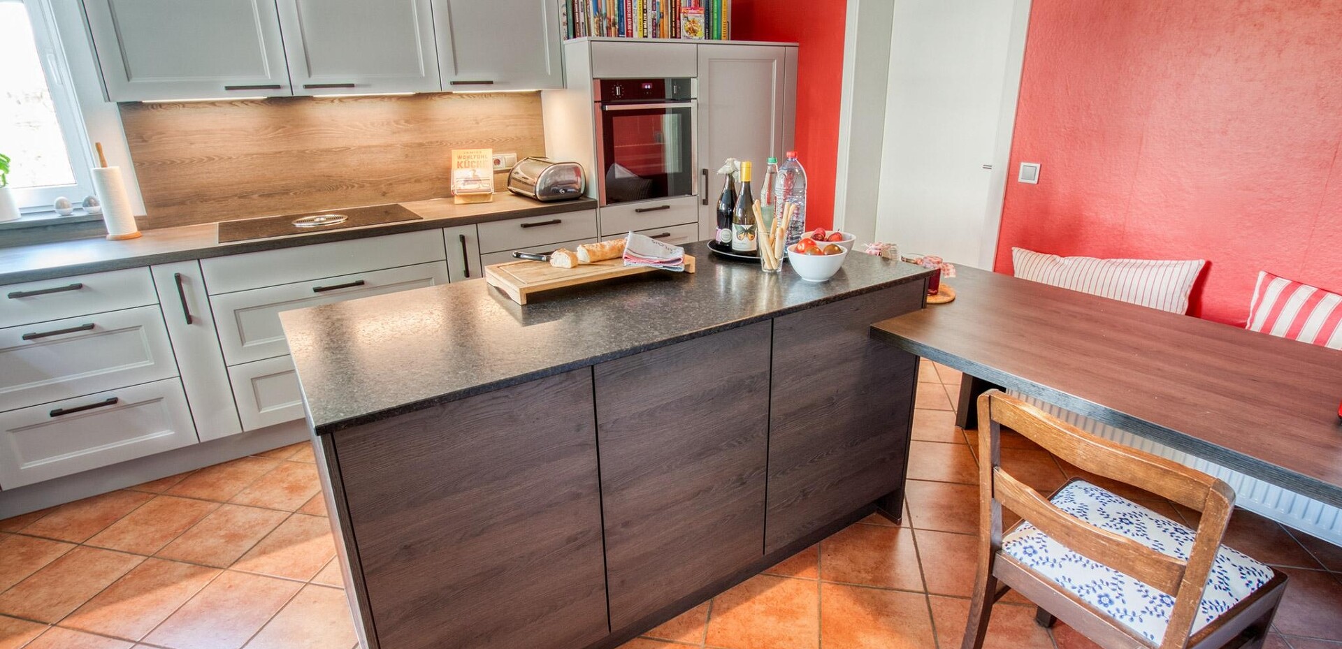 „In diese Küche bekommen wir doch nie eine Kochinsel UND einen Sitzplatz!“ zweifelte unsere Kundin gleich zu Anfang. Aber das brauchte man uns nicht zweimal sagen, denn schließlich sind Kundenwünsche ja zum Erfüllen da! Und voila! Hier ist die Lösung: Alles drin, alles dran: mit Trauminsel, viel Stauraum und Gemütlichkeit.