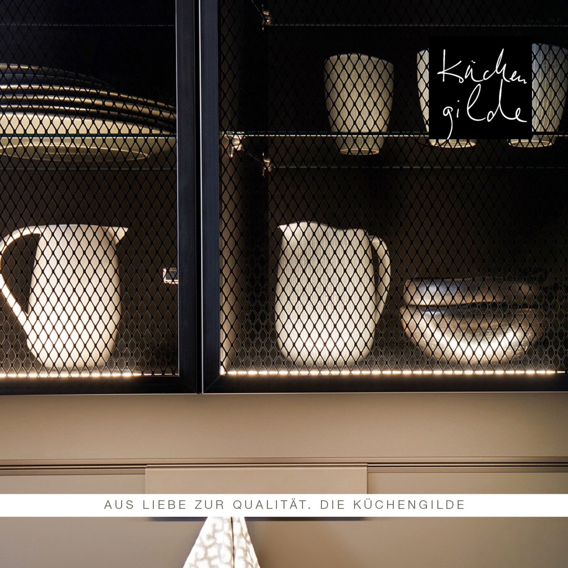 Küchenfronten aus Sicherheitsglas gibt es in vielen Ausführungen: hochglänzend, mattiert, glatt, mit Struktur. Die Glas-Rückseite wird lackiert oder sandgestrahlt und dann vollflächig auf die Front geklebt. Deshalb gibt es Glasfronten in allen Farben und Dekoren.